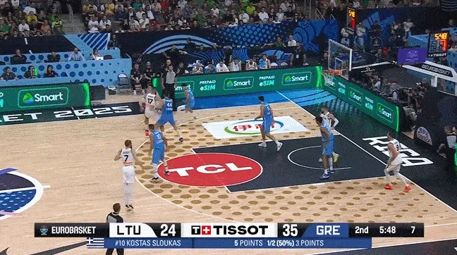 欧锦赛1/4决赛,立陶宛76-87不敌希腊